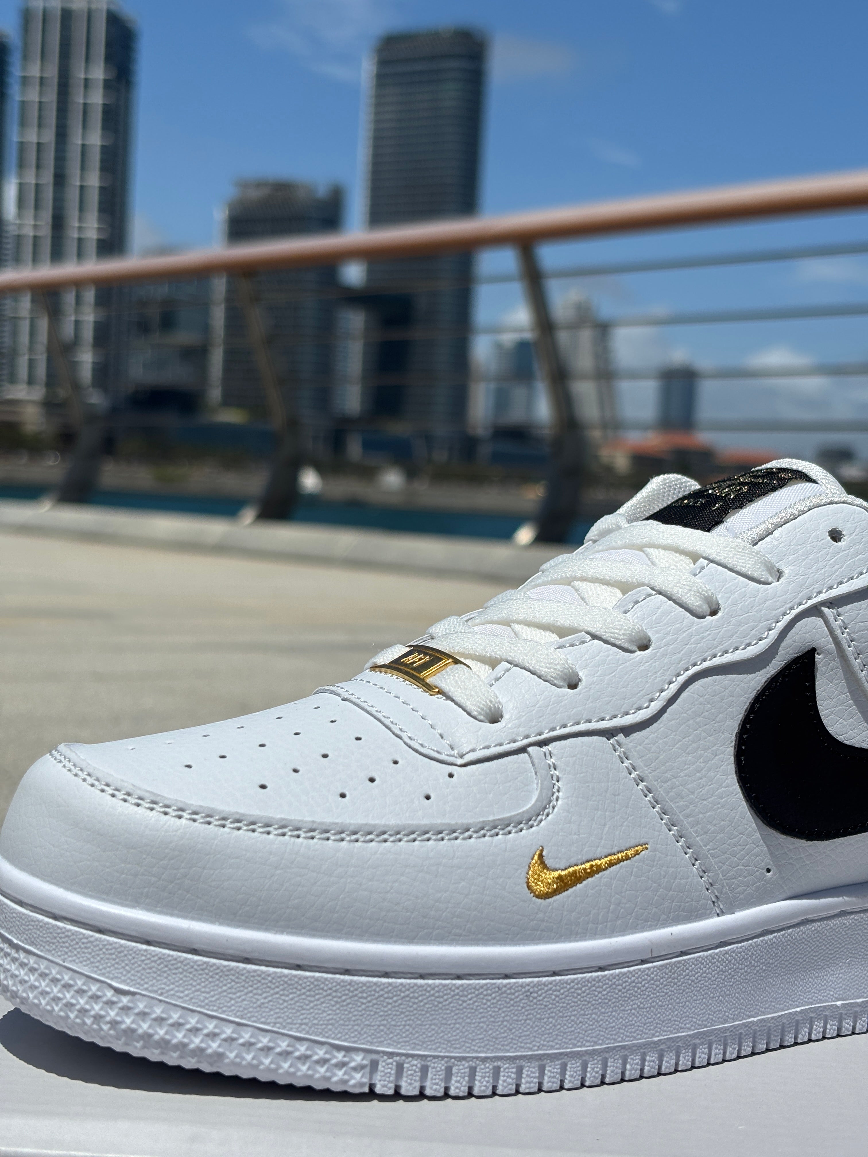 Step up your sneaker game with this timeless classic – the Air Force 1 in a clean White base with bold Black Swoosh and Gold detailing. Designed to deliver unmatched style and everyday comfort, this iconic silhouette is upgraded with premium touches, making it a must-have for any sneaker lover.