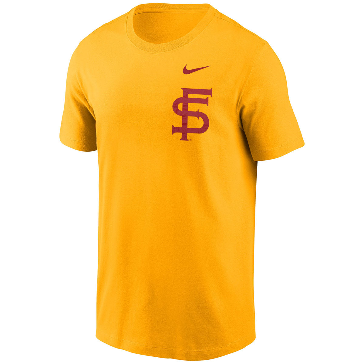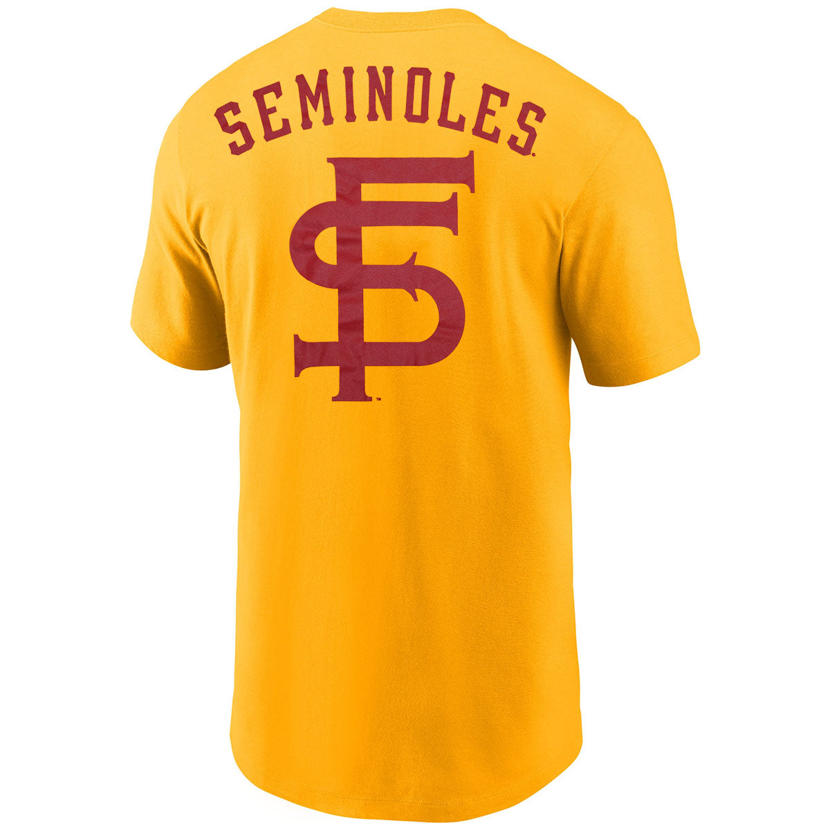 Material | 100% Cotton. Color | Gold. Nike men's short sleeve t-shirt with screen printed Vault Interlock FS front. Screen printed Seminoles Vault Interlock FS back.